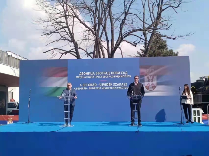 塞爾維亞總統(tǒng)武契奇和匈牙利總理歐爾班出席匈塞鐵路貝爾格萊德至諾維薩德開通儀式