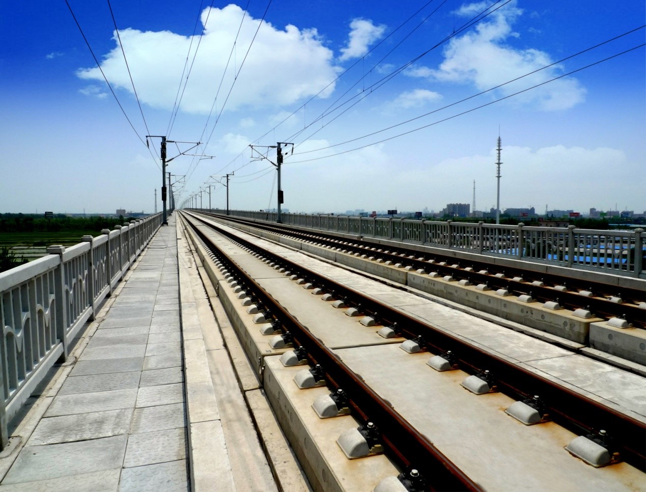 2.發(fā)明了時速350公里高速鐵路無砟軌道結(jié)構(gòu)新體系。首創(chuàng)了“垂向雙層復(fù)合、縱向應(yīng)力放散”無砟軌道復(fù)合結(jié)構(gòu)體系,實現(xiàn)了應(yīng)力釋放、軌道幾何形位保持及各結(jié)構(gòu)層同壽命;創(chuàng)新了高彈性、高基頻、高疲勞強度無砟軌道扣件技術(shù),攻克了大變形條件下鋼軌扣壓件與墊板適配、高頻共振難題;創(chuàng)新了瞬態(tài)交變強磁場和軌道電路持續(xù)磁場環(huán)境下無砟軌道系統(tǒng)多重絕緣技術(shù);解決了復(fù)雜環(huán)境和高速列車共同作用下結(jié)構(gòu)體系穩(wěn)定可靠技術(shù)難題。