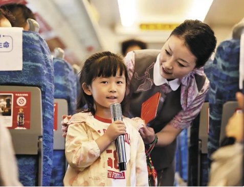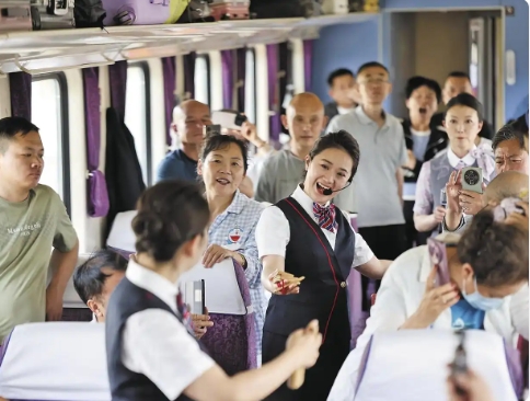 今年以來,青藏集團(tuán)公司依托鐵路沿線特色資源,開行多趟主題旅游列車。其中,“大美青?!ば腋N鞑亍睂A幸验_行8趟,服務(wù)游客2500余人次。此外,“六一”紅領(lǐng)巾專列、“研學(xué)專列”等特色列車也深受群眾歡迎,通過唱紅歌、非遺體驗等活動,讓旅客在旅途中接受文化熏陶。